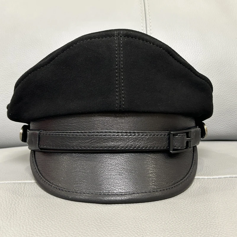 casquette en cuir homme style officier allemand noire sans badge
